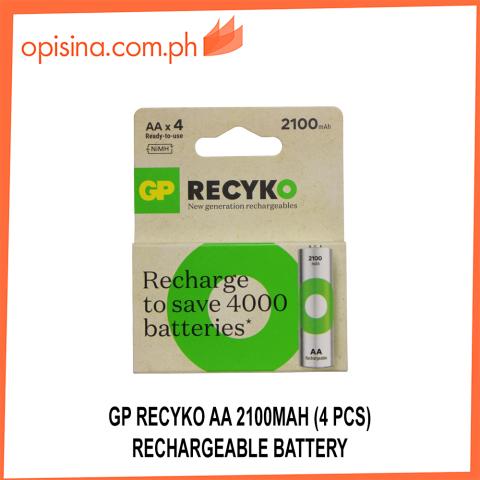 GP ReCyko battery 2100mAh AA (4 battery pack), A NiMH rechargeable AA battery with eco-friendly properties, putting less stress on the environment and your wallet. With a cycle life up to 500 times, this battery pack of four is equivalent to more than 7,000 single-use batteries*. Pre-charged and is ready to use, it can stay up to 80% charged after 12 months thanks to its low self-discharge rate. With an operating temperature ranging from -20 °C to +50 °C, it delivers reliable performance even in extreme environments.