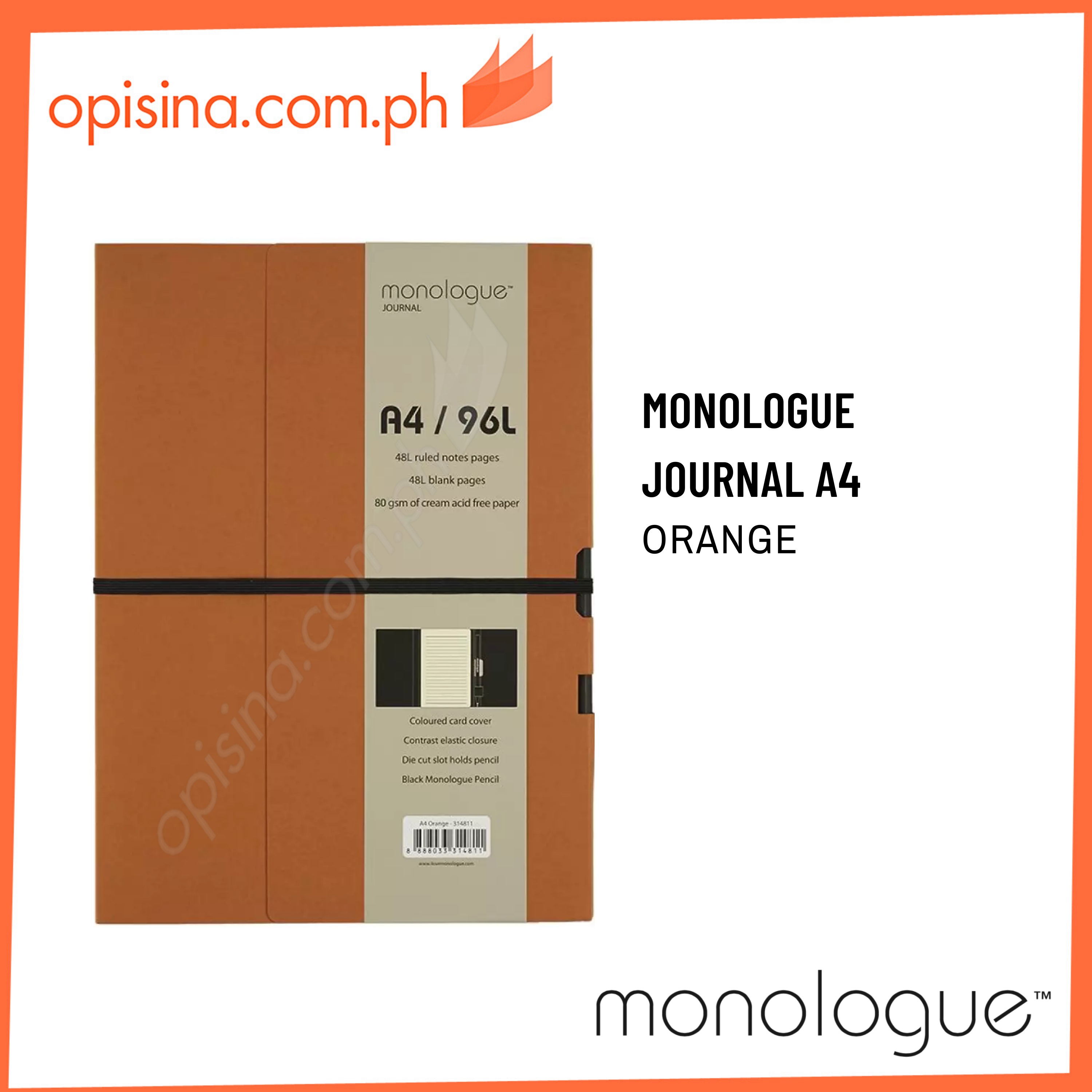 Monologue Brand Journal Notebook with lines. Pencil Included. Coloured board cover with 80 gsm acid free cream woodfree paper 96sheets ruled lines. Easy tear away sheets. Colour elastic band