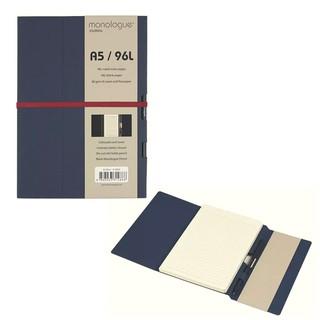Monologue Brand Journal Notebook with lines. Pencil Included. Coloured board cover with 80 gsm acid free cream woodfree paper 96sheets ruled lines. Easy tear away sheets. Colour elastic band