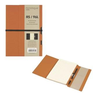 Monologue Brand Journal Notebook with lines. Pencil Included. Coloured board cover with 80 gsm acid free cream woodfree paper 96sheets ruled lines. Easy tear away sheets. Colour elastic band